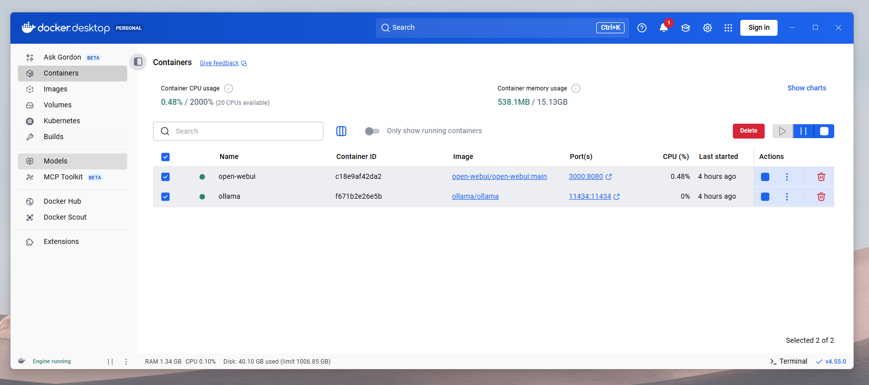 docker run -d --name open-webui -p 3000:8080 -v open-webui:/app/backend/data ghcr.io/open-webui/open-webui:main